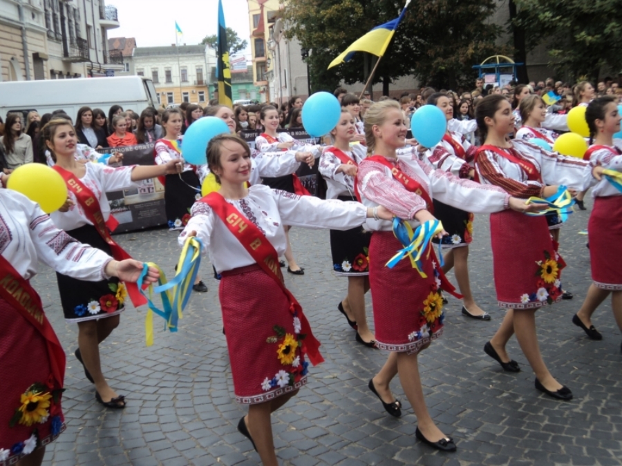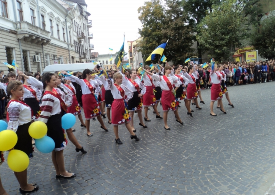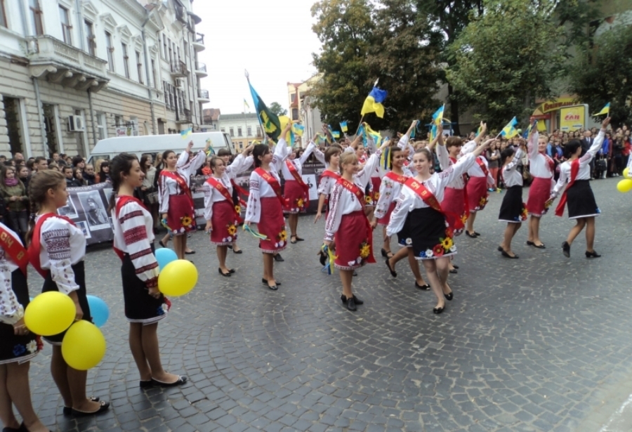 Свято розпочалося урочистою ходою середмістям колони студентів Коломийського педагогічного коледжу та інших навчальних закладів міста під звуки січових мелодій у виконанні муніципального духового оркестру. Очолили колону прапороносці державного прапору України та прапору педагогічного коледжу.