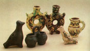 Л.ЦИБУЛЬСЬКА, нар. 1949 р. Намисто. Дзбанок. Колач. Вазочка і тарілочка. 1988. Глина, розпис, полива, ліплення. м. Коломия. |