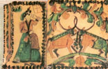 | Дмитро ЗІНТЮК (ЗОНДЮК?) Середина ХІХ ст. "Жінка з чаркою", "Два цапки на кладці" Глина, розпис, полива. с. Пістинь, Косівського р-ну. |