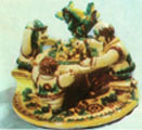 М.КІКОТЬ, нар. 1931 р. Скульптурні композиції "З лісу", 1981. "Два гуцули", 1972. Глина, розпис, полива, ліплення. м. Косів. |