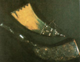 | Автор невідомий. Тобівка. XVІІІ ст. Шкіра, метал, інкрустація. Верховинський р-н. |