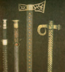 Автор невідомий. Палиці. ХІХ ст. Метал, лиття, гравірування, інкрустація, плетіння. Верховинський р-н. Топірець. 1905. Дерево, метал, бісер, ажурне карбування, інкрустація. с. Річка, Косівського р-ну. Келеф. Перша пол. ХІХ ст. Метал, лиття, гравірування, плетіння. Путильський р-н, Чернівецької обл. |