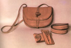 | А.М.Кісилинчук. Нар. 1960 р. Сумочка жіноча. 1981. Шкіра, тиснення, плетіння. м.Коломия. Г.М.Вах. Нар. 1953 р. Портмоне, футляр, пояс. 1977. Шкіра, випалювання, тиснення, плетіння. |