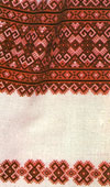 | М.ГРИМНАК, нар. 1922 р. Сорочка жіноча. Фрагмент. 1937. Полотно, вишивка, хрестик. с. Незвисько, Городенківського р-ну. |