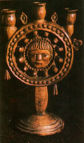 Автор невідомий. Свічник - "трійця". 1890. Дерево, різьблення. с. Брустурів, Косівського р-ну. |