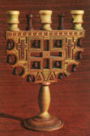 Автор невідомий. Свічник - "трійця". ХІХ ст. Дерево, різьблення. Верховинський р-н. |