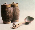 В.ЯКІБ'ЮК, 1881-1945. Ложка. 1893. Дерево, різьблення. Повниця. ХІХ ст. Дерево, різьблення, інкрустація. с. Криворівня, Верховинського р-ну. |