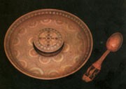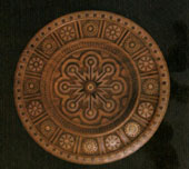 Е.ЛІСКЕВИЧ, нар. 1961р. Тарілка. 1986. Дерево, різьблення, інкрустація. м. Коломия. |