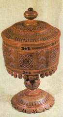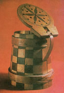 В.ШКРІБЛЯК, 1856-1928. Цукерниця. 1905. Дерево, різьблення, інкрустація. с. Яворів, Косівського р-ну. |
