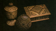 В.ШКРІБЛЯК, 1900-1976рр. Цукорниця. 1972. Рахва. 1970. Скринька. 1969. Дерево, різьблення, інкрустація. с. Яворів, Косівського р-ну. |