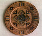 В.КАБИН, нар. 1908р. Тарілка. 1986. Дерево, різьблення, інкрустація. м. Косів. |